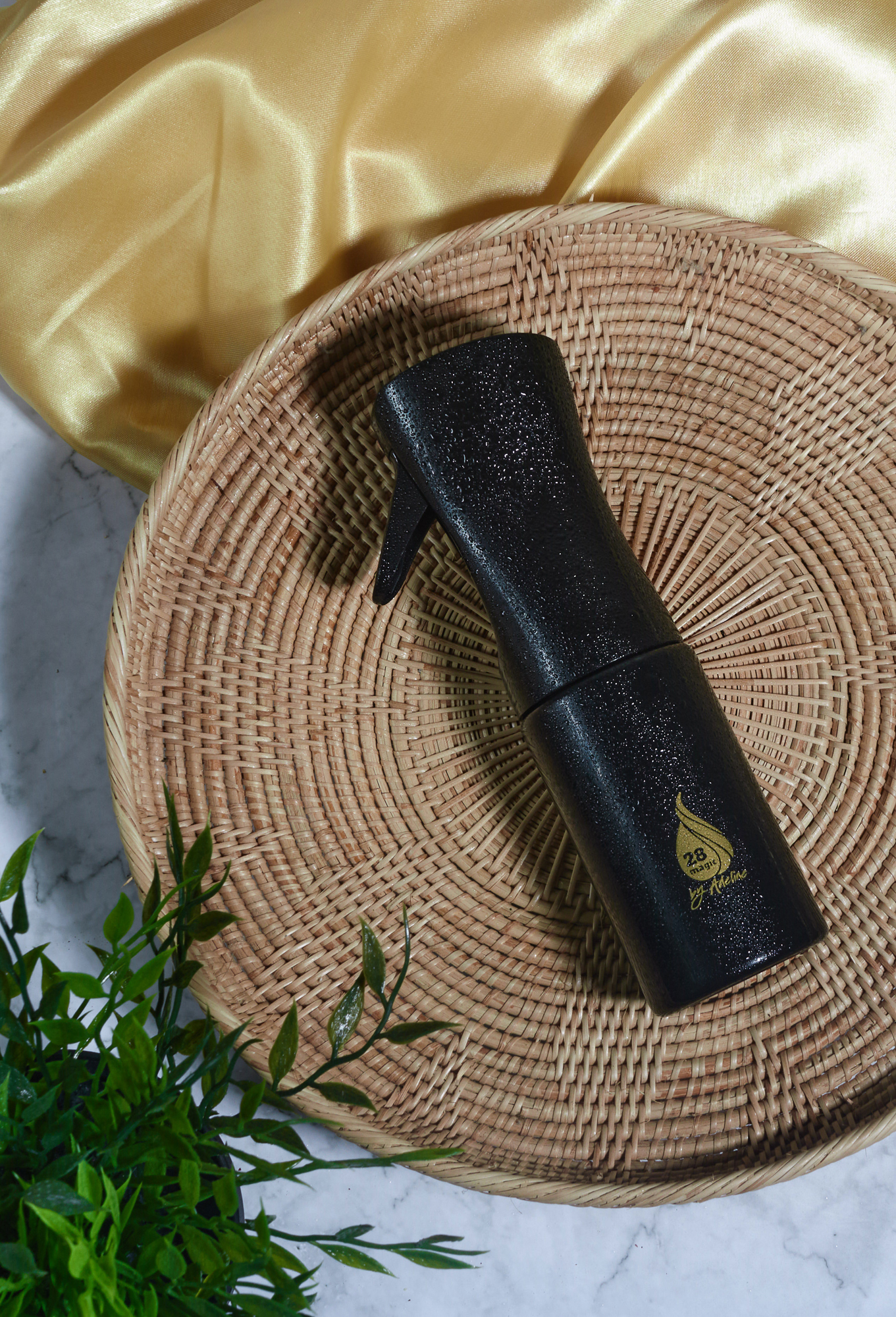 Our spritz bottle is durable and is resistant to leaks. Our nozzle sprays like mist and triggers a comfortable feel in your palms. You can more evenly distribute your water when applying with our spray bottle. Add a bit of our Hair Oil after applying water to maximise your hair’s moisture and to help with the detangling process.